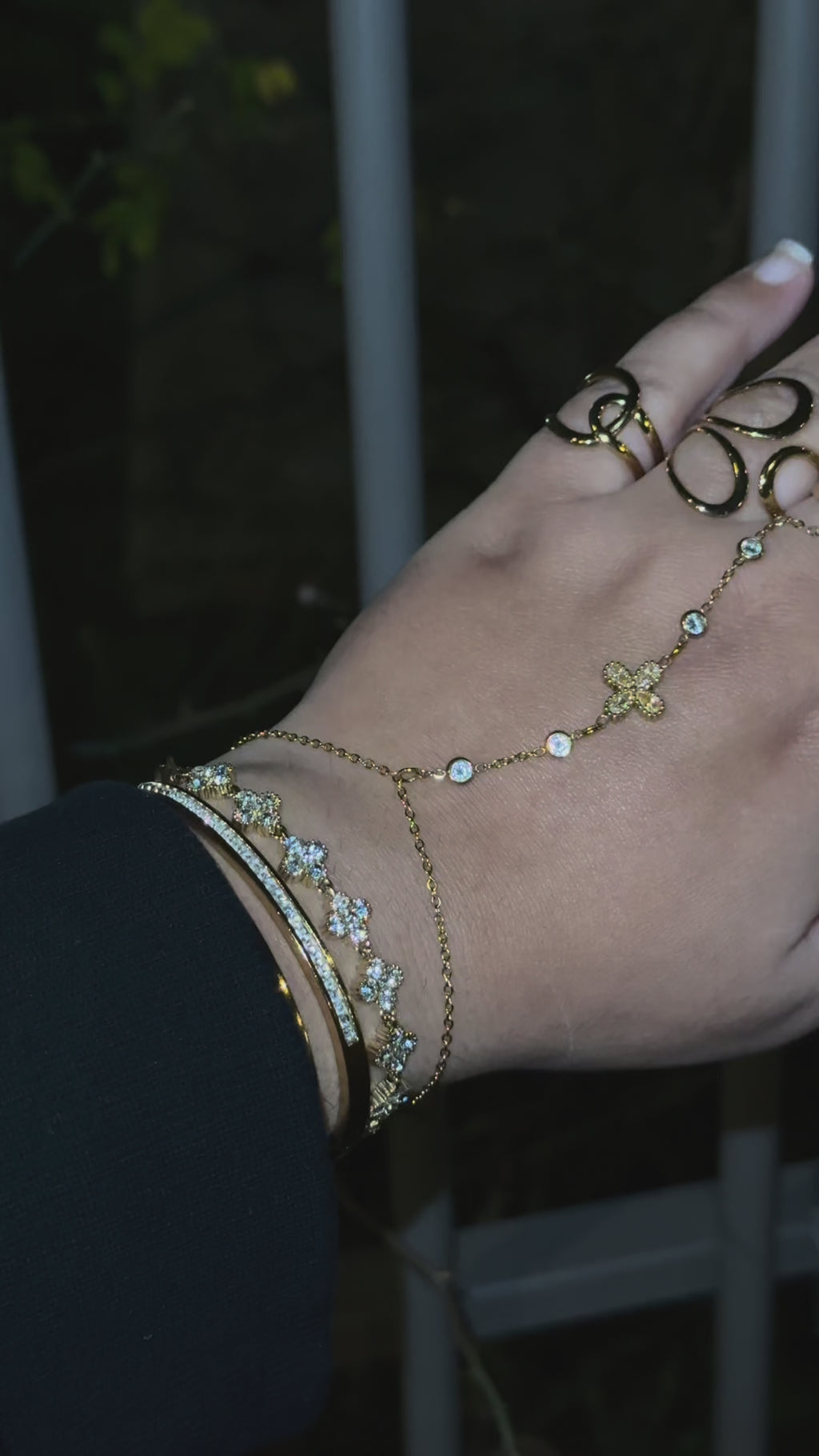 Bracelet tennis trèfle en acier inoxydable – pierre blanche ✨