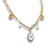 ✨ Un collier original et raffiné, composé de maillons dorés agrémentés de charms élégants : médaillons martelés, perles nacrées et un pendentif central orné d’un motif délicat. Un bijou qui mêle modernité et féminité, idéal pour sublimer vos tenues avec une touche unique et tendance.
